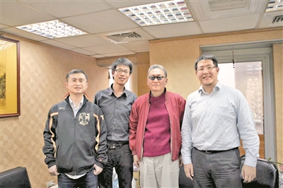 李敖2009年接受本报记者周祚、顾展旭、王鹤采访时合影。