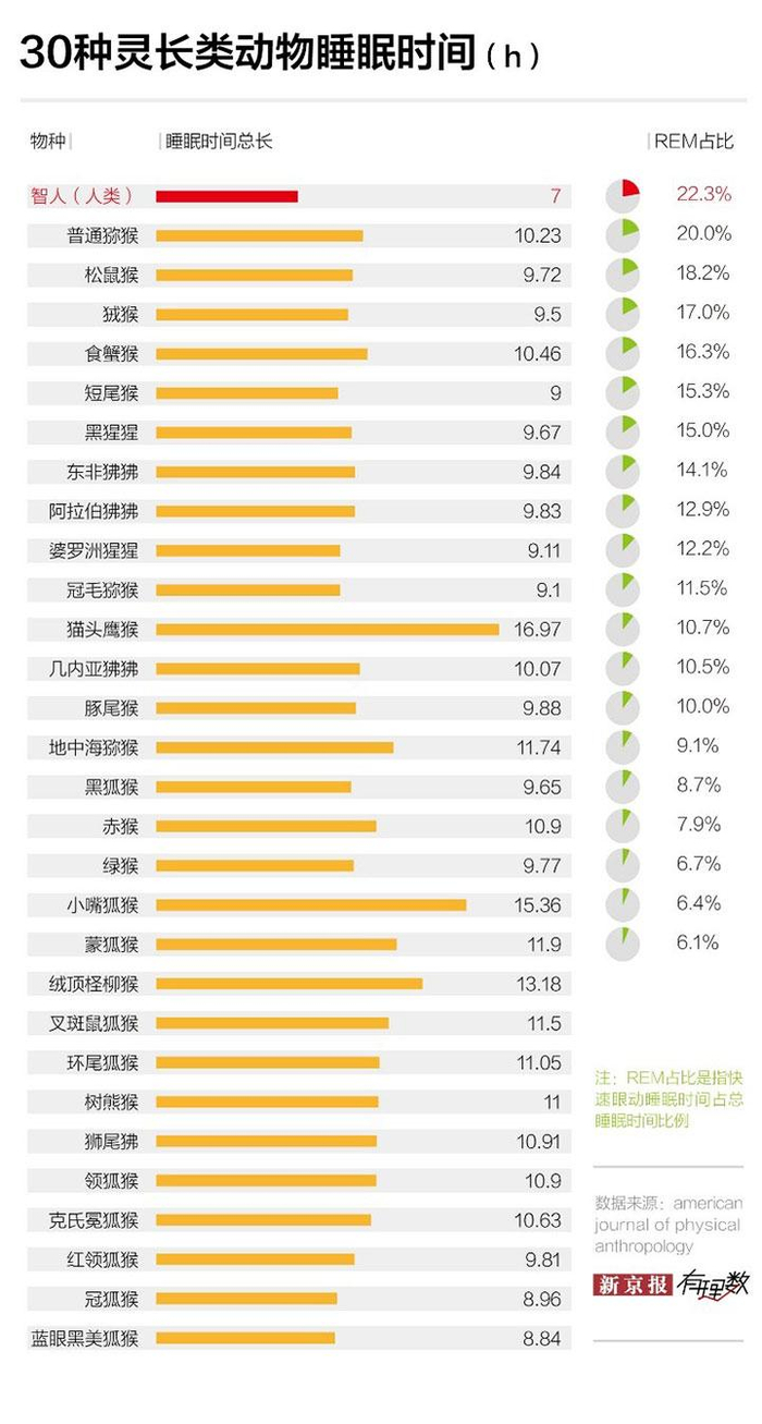 原标题:数据显示,你的睡眠时间还比不上一只猴子 |有理数