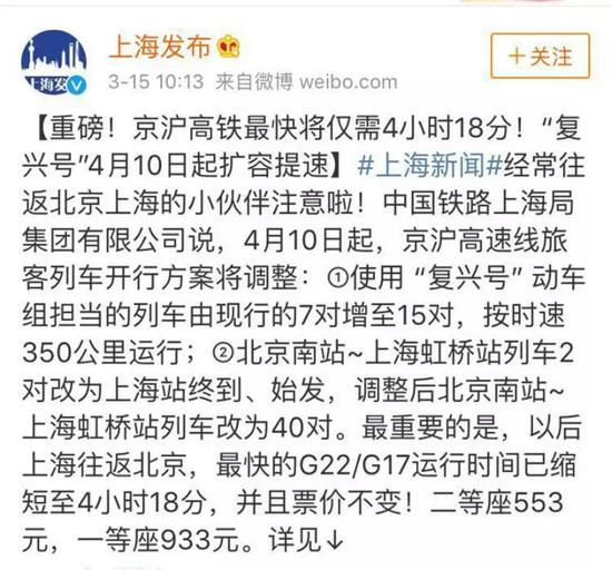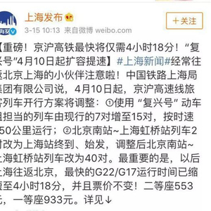 京沪高铁最快仅需4小时18分!!