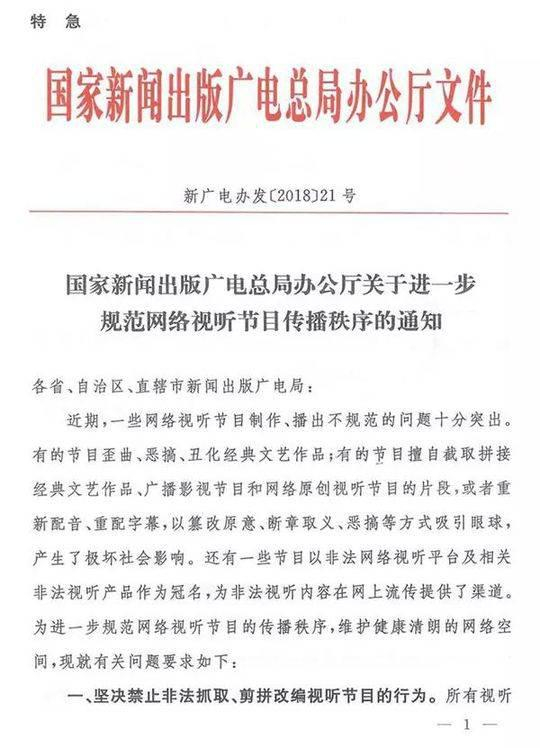 原标题:广电总局:禁止非法抓取和剪拼改编视听节目