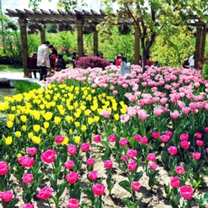 郁金香:3月底4月初,景区的郁金香开始怒放。景区郁金香栽种有10多万株,品种多达30多种,其中名品有香奈儿、国泰民安等。