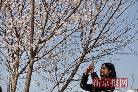 3月22日,筹备三年的北京蓝调樱花园部分早樱已经盛放,该园即将于下周三举办首届樱花节。据了解,蓝调樱花园位于朝阳区金盏乡,园内各类品种的樱花树数量达1万株,是玉渊潭的近5倍,为北京目前最大的樱花园。