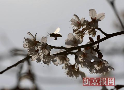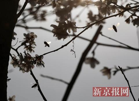 盛放的早樱吸引了众多的蜜蜂