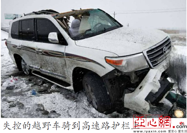昨日,记者从自治区公安厅交警总队高等级公路支队乌拉泊大队了解到,上一场大雪天气过后,他们处理的一起事故值得给其他驾驶员提个醒。“车子爆胎了,然后方向失控,整个车骑到高速路护栏上,车辆损毁严重。”乌拉泊大队民警周伟说。