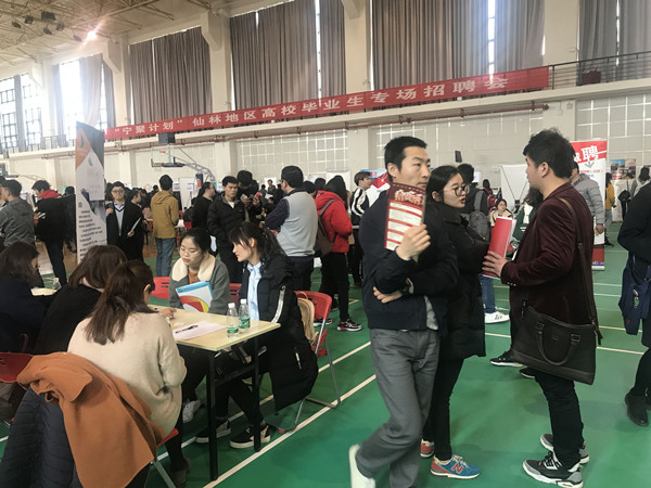 3月23日,由市人社局、南京邮电大学主办,市就管中心、南京邮电大学招生就业处、各区(园区)人社局、仙林高校毕业生就业工作区域联盟承办的“宁聚计划”仙林地区高校毕业生专场招聘会在南京邮电大学体育馆举行。江苏大剧院运营管理有限公司、南京熊猫汉达科技有限公司、宏光空降装备有限公司等180家知名企业提供了信息技术、金融投资、生物医药等2000多个专业岗位,共吸引4000多名毕业生进场。
