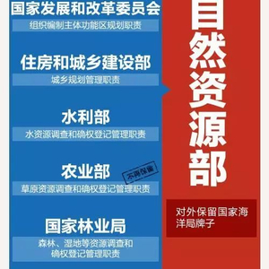 自然资源部将统一行使全民所有自然资产所有权职责,统一行使所有国土空间用途管制和生态保护修复职责,着力解决自然资源所有者不到位、空间规划重叠等问题。一句话,自然资源部将陆海空一体,对“山水林田湖草”整体保护、系统修复、综合治理。