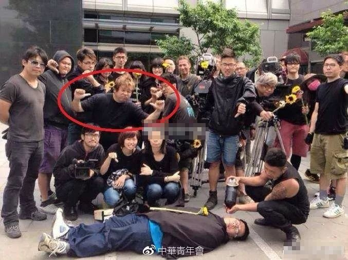 有网友曝光,瞿友宁还曾和“太阳花学运”学生合影留念: