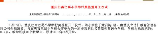 据悉这是由重庆市巴蜀小学校与重庆立达仁教育管理有限公司携手合作,打造的一所全日制民办小学-----“重庆巴南巴蜀小学”(暂定名,民办在建)