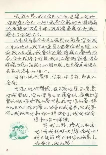 “琴琴,虽然我们不能马上结婚,但在感情上,我是依着你的。你是我的港湾,你是我的跑道。漂泊久了,我会来到你的怀抱停靠,飞翔累了,我会在你的胸前休憩……”
