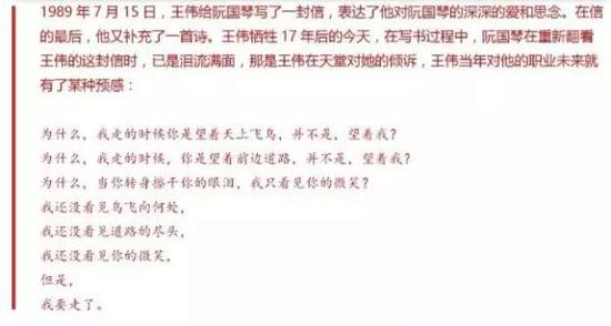 1989年在阮国琴21岁生日的那天,她收到了王伟寄给她的生日贺卡。