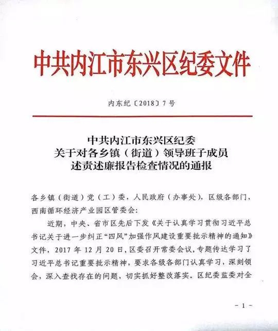 3月4日,华西都市报-封面新闻获悉:今年年初,内江市东兴区纪委,在例行检查各乡镇(街道)领导班子成员2017年的述责述廉报告(俗称“年终总结”)时,发现部分干部存在照抄照搬、抄袭拼凑或相互抄袭的现象;“有的甚至把2016年的总结,只将时间改为2017年;或者把文中的‘十八大’、改为‘十九大’,就交上来。两个年度的总结,内容95%相似。”