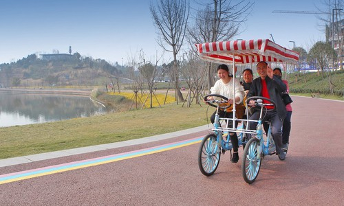 “风景不错,环境很好,还有很多新奇的东西。”36岁的刘先生喜欢“尝鲜”,听说天府新区有一条“智能”绿道,他迫不及待想来体验一下。“这里有多功能运动场、趣味迷宫、儿童互动体验场地,服务设施也很完善。绿道沿线还布置了荧光夜跑道、儿童趣味沙坑、山地自行车、水上游船等特色健身设施,感觉很时尚。”