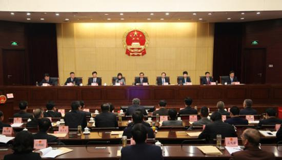 4月9日上午,临沂市十九届人大常委会第十次会议召开。市人大常委会主任杜德昌主持会议。