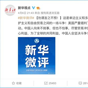 4月6日晚间,新华社发表评论:这是单边主义和多边主义之间的一场斗争,是保护主义和自由贸易之间的一场斗争!美国严重错判了形势,采取了极其错误的行动。中国人向来不挑事,但也不怕事,尽管贸易冲突没有赢家,但为了中国的核心利益,为了全球的共同利益,中国人会坚决斗争!勿谓言之不预!