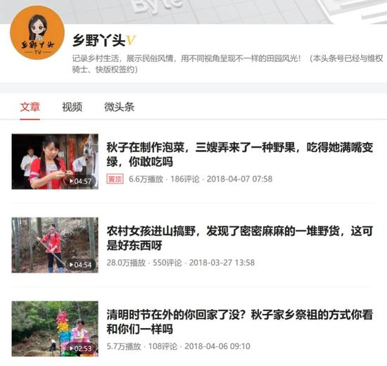 今日头条的三农频道自2015年7月上线,打开 “三农”频道,其内容涵盖养猪、水产、农机等农业各个领域。不仅是中国的8亿农民,包括海外华人农户,都可以在内找到关于农村美好生活、农业政策、农资、农业技术相关的信息。除了付老师这类热衷分享种植经验的三农头条号,还有专注养猪100年的“猪倌巴巴”、记录乡村风土人情的“乡野丫头”、提供农村自建房解决方案的“住宅公园”,等等。