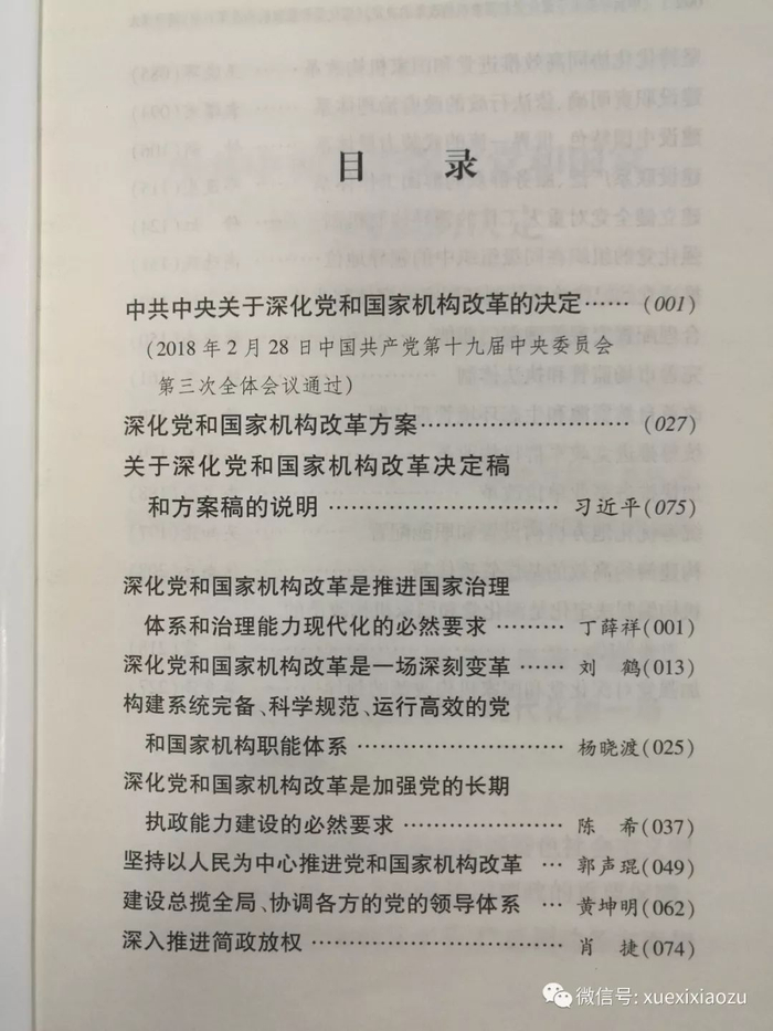 今天,党的十九届三中全会文件及辅导读物首发式在京举行。首发的4种文件读物中,由文件起草组组织编写的《〈中共中央关于深化党和国家机构改革的决定〉〈深化党和国家机构改革方案〉辅导读本》一书,收录了习近平总书记在三中全会上所作《决定》与《方案》说明稿,7位党和国家领导人权威解读文章,以及16篇省部级领导干部和有关专家解读文章,是此次全国深化机构改革的唯一官方解读文本。
