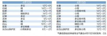 今天白天,风力会有所减弱,但又将迎来小雨天气。今天白天,长春北部、吉林、白山北部、延边西部和北部、长白山保护区多云,有雨夹雪或小雨,其他地区晴有时多云。今天夜间到明天白天,全省多云,白城、松原、长春、四平、辽源有阵雨或雷阵雨。今天白天,我省气温最高的是白城和四平,为14℃,其他城市为9℃~12℃,长春为12℃。今天白天,我省大部分地区有5~6级转3~4级西北风,其中,吉林和延边地区瞬间风力可达8级左右。