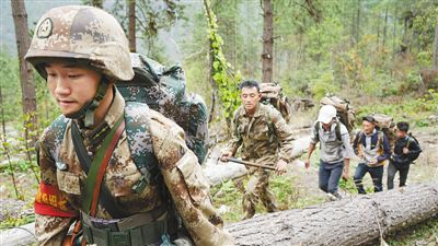 察隅边防官兵与当地居民组成巡逻队进山巡逻。 |