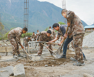 上察隅镇松林村藏族同胞玖五家建房缺帮手,边防官兵主动前往帮忙。 |
