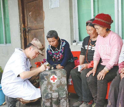 “这两年,我的关节炎经常复发,全靠部队的医生送药。虽然我叫不出他们的名字,但哨所的每个人都是好人,像自己的孩子那么熟悉。”4月10日下午,当边防连的医生阳运川来到村里义务巡诊时,次旺卓玛用藏语对记者说。