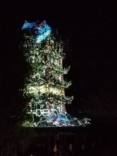 夜幕下的名山景区 通讯员 李莲 摄在游客接待中心的墙壁上,彼岸花、“黑白无常”、名山牌坊、“奈何桥”等名山景区的特色符号轮番出现,配以诡异阴森的音乐,加上3D动漫的立体效果,给人强烈的视觉冲击。从游客接待中心拾级而上,沿路或看四季变幻,或赏古今名人描写丰都的古诗词,还有道路两旁飘零的蒲公英,“玉皇殿”上脚踏祥云翩翩起舞的仙女,“望乡台”上动人心魂的《思乡曲》,无不展现了丰都特有的文化符号。沿途还可观赏变脸、喷火等川剧绝活,还有穿着各种服装的coser在黑暗中神出鬼没,必将让游客感受到不一样的明山景区。