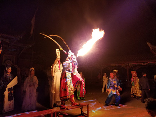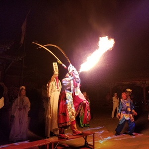 喷火表演。通讯员 李莲 摄据悉,名山景区将在今年庙会期间推出“夜游鬼城”项目,利用多媒体互动影像艺术,以景区文化为故事载体,根据场景、传统文化、景区导游词等,通过七个篇章的光影表现鬼国幽都的神秘景象,其中除个别区域运用静态投影技术外,大部分场景都是以还原历史为主的3D动漫艺术创作。最终体现“鬼城本无鬼、鬼亦在心间”,唯有光明磊落,方可“唯善呈和”的思想。
