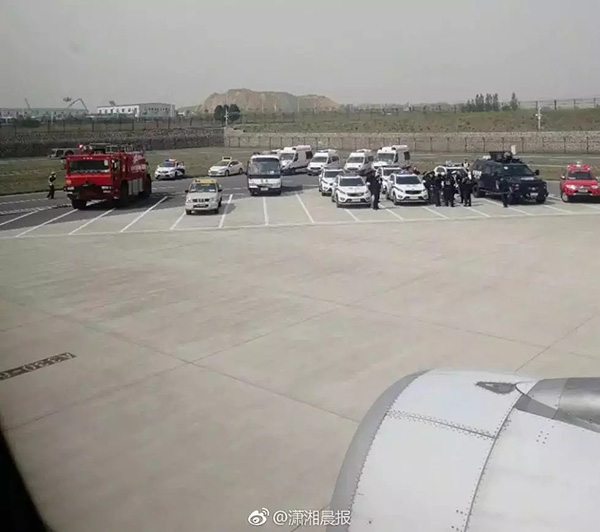 落地后他和很多乘客注意到,飞机一直在滑行,但并非前往候机大厅方向,而是一直滑到机场最边缘的位置才停下,他们被要求从飞机后方舱门下机,此时,飞机周围已经停了很多警车、救护车、消防车。乘客们议论说,刚才空乘肯定骗他们了,这个阵势,显然不是“天气原因导致备降”,乘客中有人猜测是发生了劫机事件。不过对此,空乘和机场工作人员并未回复。