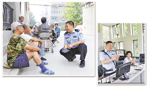 左图 吕建江(右)与群众促膝谈心。 (资料图片)右图 吕建江(左)与同事研究网上警务。 (资料图片)