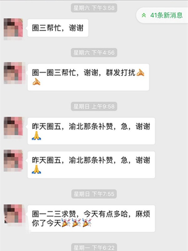 据爆料网友介绍,因为工作关系加的好友,最开始每天都会发消息帮她点赞,自己也礼貌地帮忙点一下。可现在,一打开手机全是几条点赞的信息,要么是给孩子点赞,要么是给景区点赞,看到这些信息,简直让人受不了,爆料网友抱怨道。