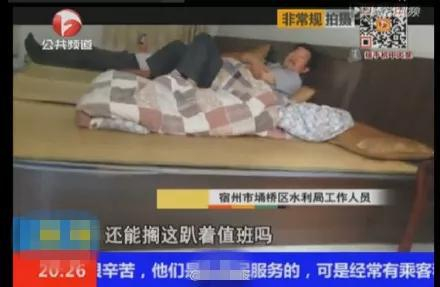 这还不是最“奇葩”的理由,2015年,媒体曝光安徽宿州一水利局两官员竟然在防汛值班工作期间睡觉,当时,记者来到宿州市埇桥区水利局,发现工作人员正在睡觉,媒体记者询问时却遭反问:“值班不躺着难道还趴着吗?”