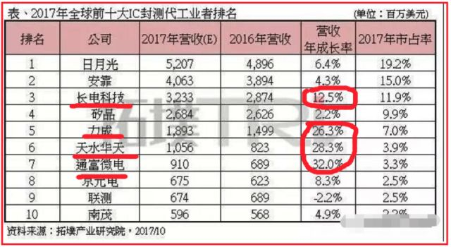 中国的封测发展还不错,我国企业技术水平和世界一流水平已经不存在代差,体量已经进入世界前三,而且仍在迅速壮大。