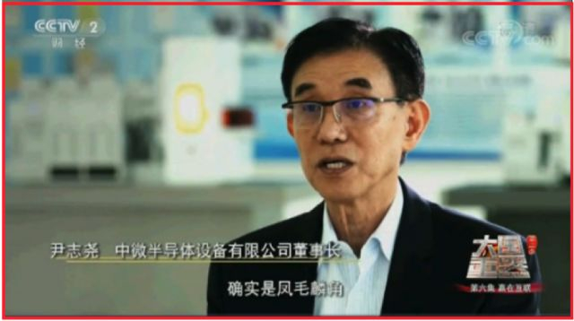 2017年CCTV在《大国重器》中专门报道了中微半导体设备有限公司自主研发的7纳米刻蚀机,打破国外垄断,成为台积电、中芯国际等加工企业的设备供应商。