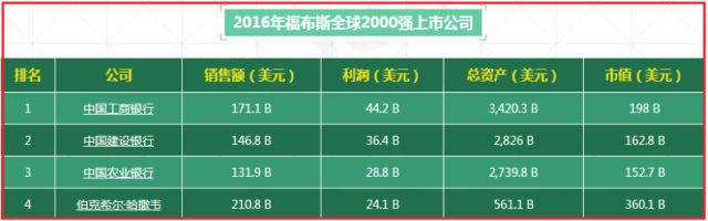 背景材料:2016年美国福布斯全球上市公司2000强,前三甲都是中国的国有银行,第四是美国的伯克希尔·哈撒韦,主营业务包括保险、糖果和珠宝。