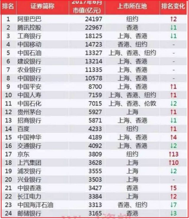阿里在纽约上市,腾讯在香港上市,工行在上海和香港两地,中国移动香港和纽约两地,中国石油上海、香港、纽约三地上市,独守上海的第一名就是贵州茅台。