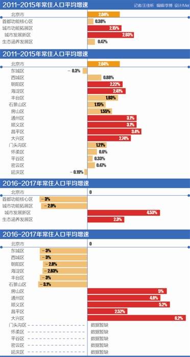 中国人民大学人口与发展研究中心教授杨菊华告诉记者,城六区常住人口的减少和城市发展新区常住人口的增加,肯定是跟政策有关的。特别是过去两年,北京在疏解城市中心人口方面,花了很大力气。