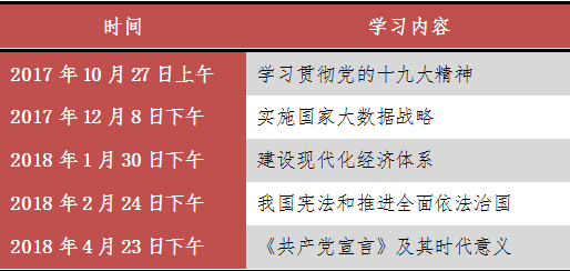 拿十九届中央政治局的集体学习为例。