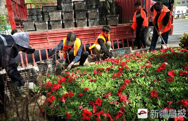 美迎“五一”!乌鲁木齐沙区街头摆放10万余盆各色花卉