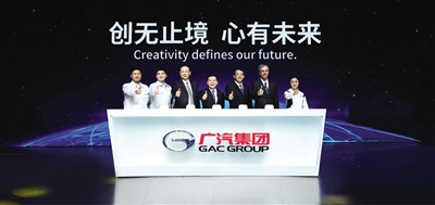 | ▲广汽集团领导和员工共同发布企业文化口号“创无止境 心有未来” |