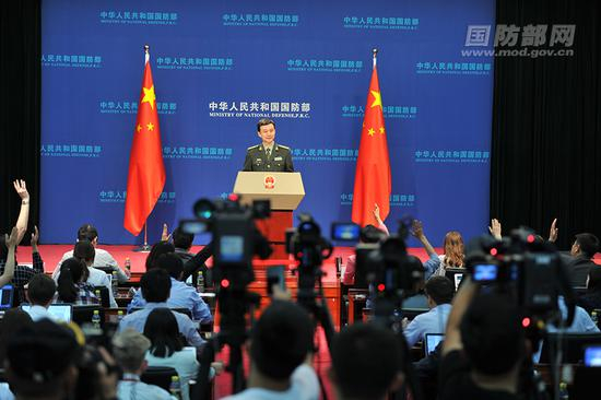 4月26日下午,国防部召开4月例行记者会,国防部新闻局局长、国防部新闻发言人吴谦大校回答记者提问。李爱明 摄