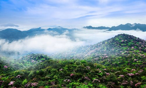 四、五月间,井冈山十里杜鹃长廊,再次以红遍万山的姿态,迎接八方来客。像这样团簇、密集而热烈的红,除了杜鹃花之外,很少有别的山花可以展现。