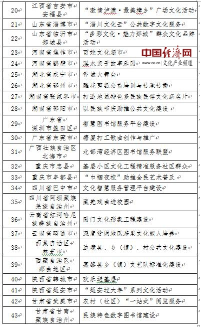 原标题:第四批国家公共文化服务体系示范区(项目)创建资格名单公布