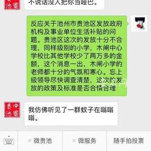 安徽网5月7日讯,5月2日晚,池州市贵池区官方微信平台“贵池区人民政府发布”在给群众回复时,说出“你不说话没人把你当哑巴”等雷人话语。此事经新安晚报、安徽网、大皖客户端报道后,引起广泛关注。5月5日深夜,上述微信平台公开发布一封“致歉信”,向社会公布了事件调查结果。记者6日从贵池区委宣传部获悉,第三方运维单位相关责任人目前已受到相应处分;同时,贵池区信息办也已启动问责程序。