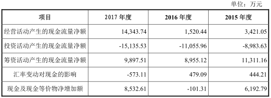 其中,2015年度和2016年度,公司经营活动产生的现金流量净额低于公司净利润。