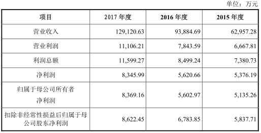 2015年至2017年,密尔克卫实现营业收入分别为62,957.28万元、93,884.69 万元、129,120.63万元,实现归属于母公司所有者净利润分别为5,135.26万元、5,602.97万元、8,369.16万元。