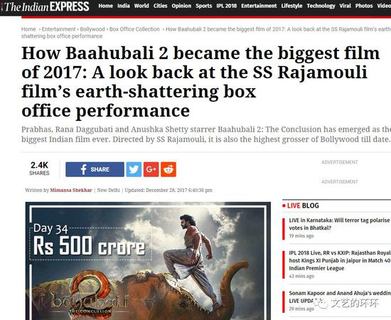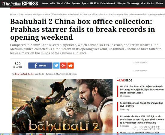 这是《印度快报》报道的标题:“《巴霍巴利王2》中国票房表现:Prabhas(影片男主)的片子没能打破首周末记录”,然后对比《神秘巨星》和《起跑线》,哼!差得远呢。