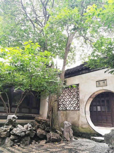 与何园的绣球、广玉兰相比,位于桂花厅东面黄石假山上的百年女贞,显得低调得多。它静悄悄地从假山底部长出,经过百年生长,树干最高处早已超出了院墙。几年前出于安全需要,假山中部加装了木桩藩篱,人很难靠近其上的古树,更让它增添了些许孤独的味道。