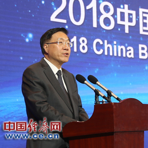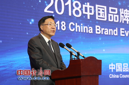 5月9日,“2018中国品牌价值评价信息发布暨第二届中国品牌发展论坛”在上海举行。图为国家市场监督管理总局党组成员陈钢致辞。经济日报-中国经济网记者张相成/摄