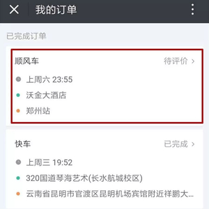 家属提供的一张已完成的订单截图显示,李某珠于5日晚11时55分,从沃金大酒店搭乘顺风车至郑州站,待评价。“她买的是夜里1点从郑州到济南的卧铺车票,要回老家参加亲戚的婚礼”。李某珠的亲友吴先生告诉重案组37号(微信ID:zhonganzu37)。李某珠父亲提供的微信聊天记录显示,6日凌晨0时2分,女儿通过微信告诉同事,“遇到个变态,说我长得特别美,特别想亲我一口”,并表示幸亏自己没坐前面。同事建议她假装给自己打电话,“假装说‘老公我马上到机场’,你到机场出发厅等我,我给你打。”
