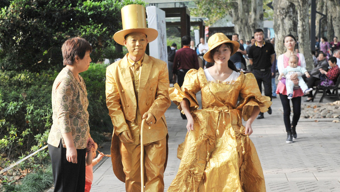 街头艺术之花的五色缤纷,同样体现了上海市民说生活幸福指数的进一步提升。有人在徐汇区演出现场作调研,问一位经常来观看演出的老观众:“你为什么经常来看演出?”这位老人坦然回答:“有意思啊!”意思在哪里?老人回答道:“比呆在屋子里看电视强。”观众看街头艺人的演出,是一种双向的活生生的交流——街头演出为围观者提供了人与人的会合、交流的一种机遇,又为他们共同的心理体验提供了一种机会。看街头艺人演出,观众与演员的距离,比看舞台演出还近,“当堂反馈”更为直接。据说这位老人经常心甘情愿摸出10元钱,换来了一个“有意思”,便是这个“意思”。这也是对“幸福指数”作了一个生动的明白的诠释。