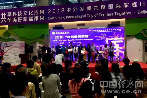 全国妇联、北京市妇联等领导为获得2018“首都最美家庭”称号的国际家庭代表颁发了奖杯和证书。 经济日报-中国经济网记者 苏琳摄。